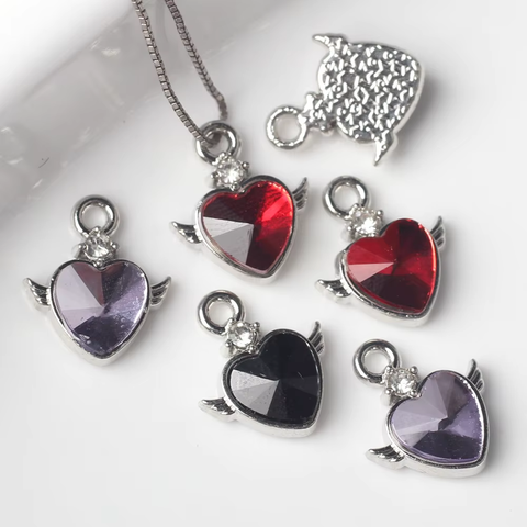 Kalp şeklinde kristal Charm kolye DIY sanat dekorasyon bilezik kolye renkli kolye takı aksesuarları