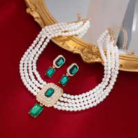 Fashionable Light Luxury Geometric Alloy Multi-Layer Imitation Pearl Necklace Set Beads Clavicle Chain Diamond Party Religious